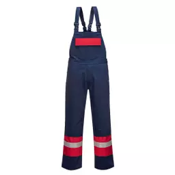 This bib and brace is constructed with high visibility reflective tape double stitched for enhanced visibility. Features include triple stitched seams, high visibility strips on the legs, two front patch pockets, one rule pocket, one front chest pocket, one back pocket with flap and stud closure and adjustable bottom leg opening.